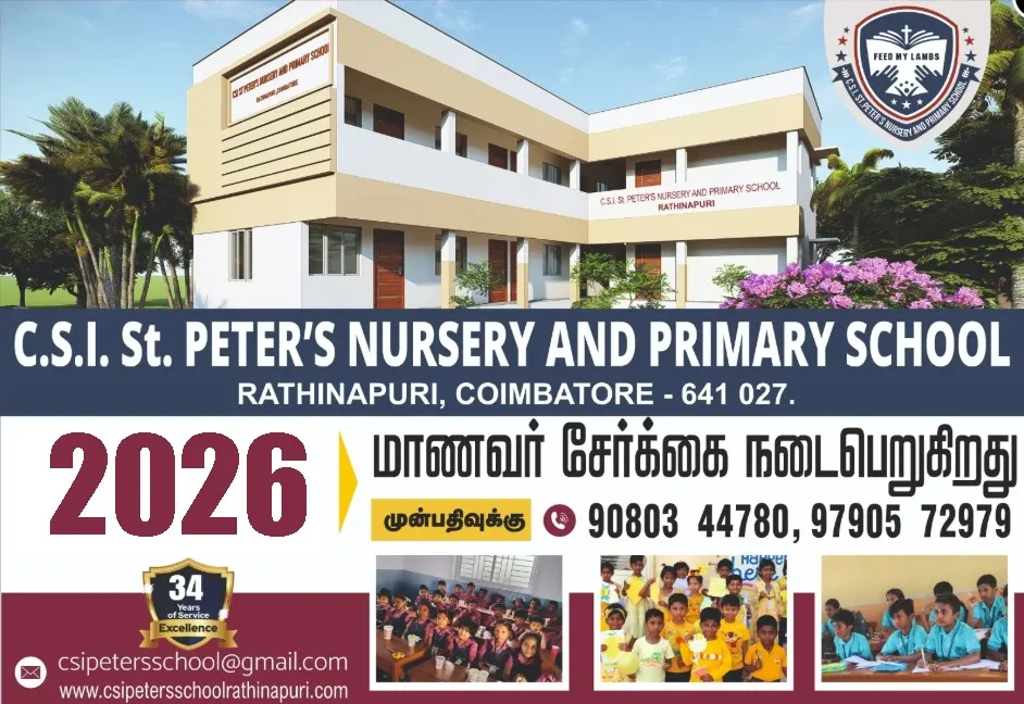 CSI St. Peter’s Nursery and Primary School, situated in the heart of Rathinapuri, Coimbatore, is a nurturing institution committed to laying a strong educational foundation for young learners. Established with a vision to provide holistic development through value-based education, the school operates under the guidance of the Church of South India (CSI), upholding Christian principles while embracing students from all backgrounds